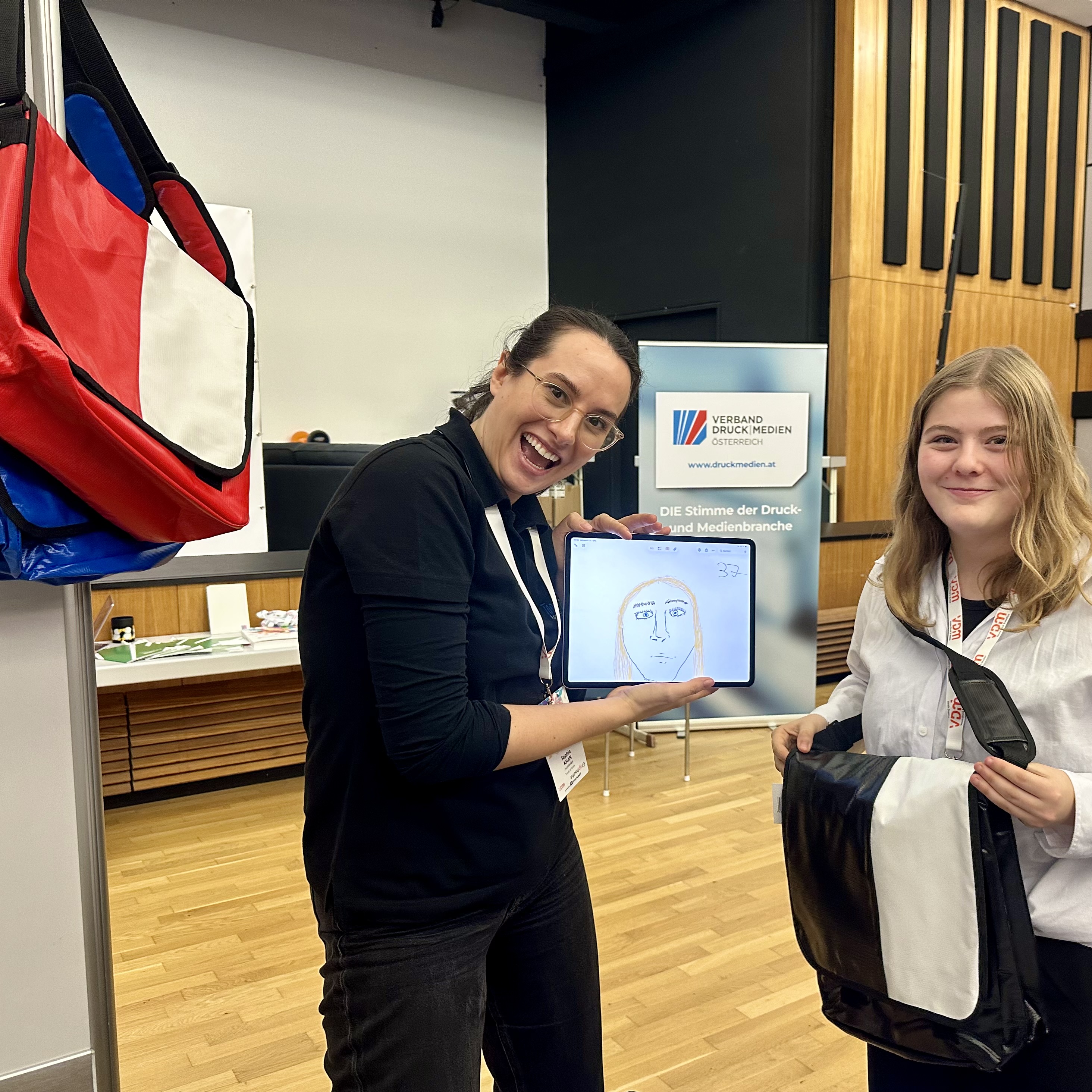 Gute Stimmung am Stand von Tools at Work auf der Print Fair 2025, die am 22. und 23.10. an der Graphischen stattfand. Ging doch das Tools at Work Gewinnspiel unter dem Motto „iPad yourself“ heuer in die zweite Runde.